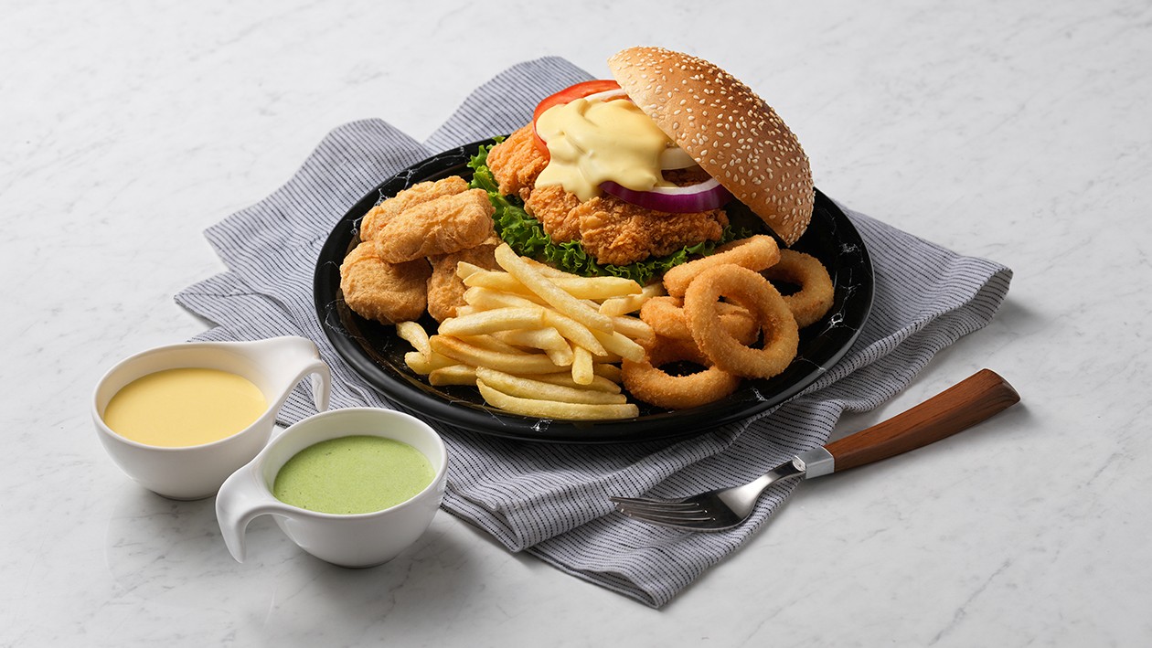 綠色的沾醬可以吃嗎?當然可以,以康寶荷蘭醬和義式香料醬調出草綠清爽醬汁,還有潮流金酸湯和美玉白汁調成的中西fusion美乃滋,炸物、肉類百搭!